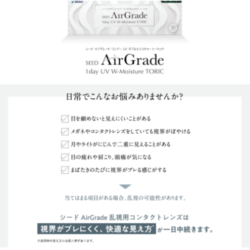 エアグレードワンデーUV w-moisture TORIC(30枚) 要処方箋1日使い捨てコンタクトレンズ 乱視用